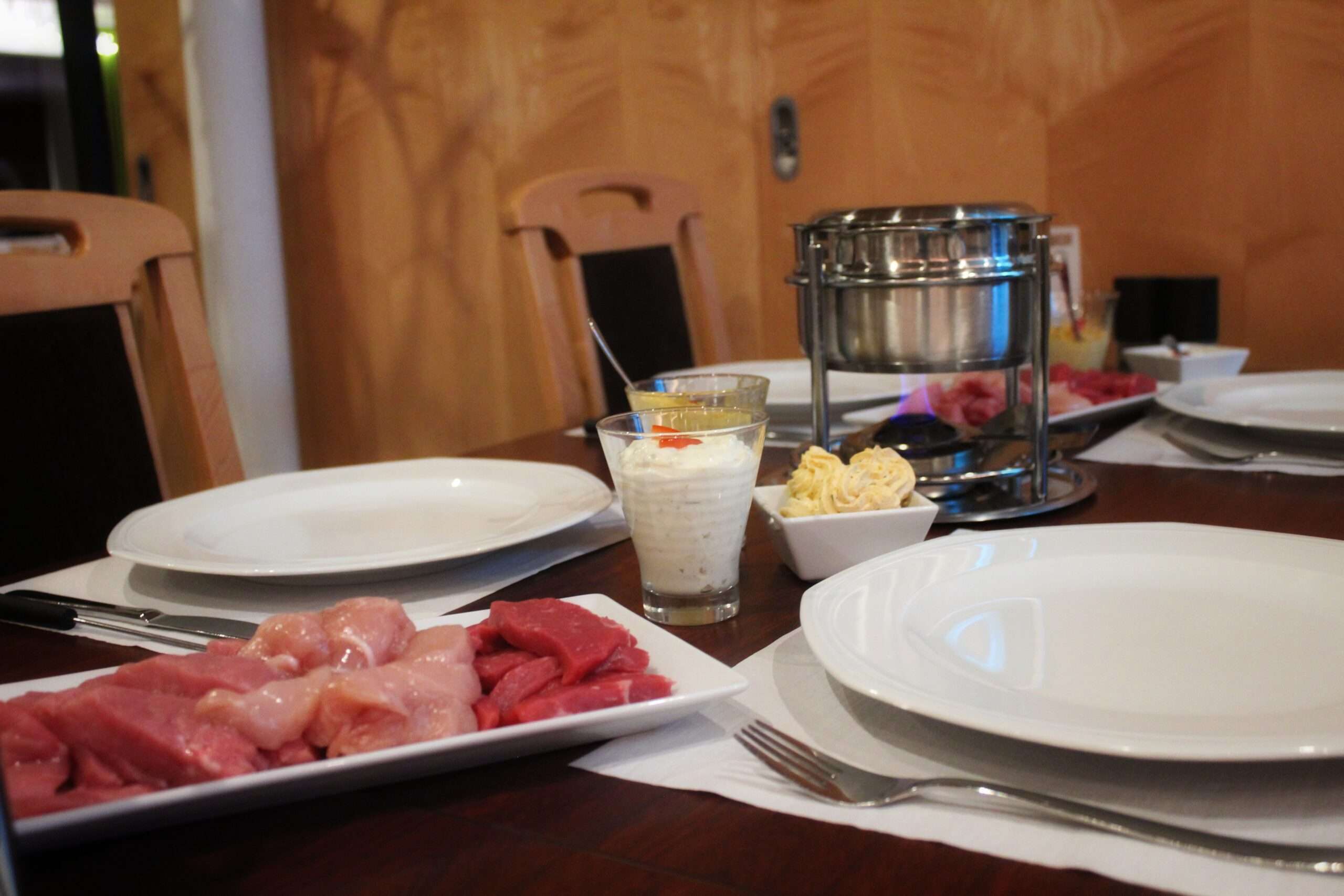 Pro Person 200 gr. Fleisch vom Rind, Kalb und Poulet.
